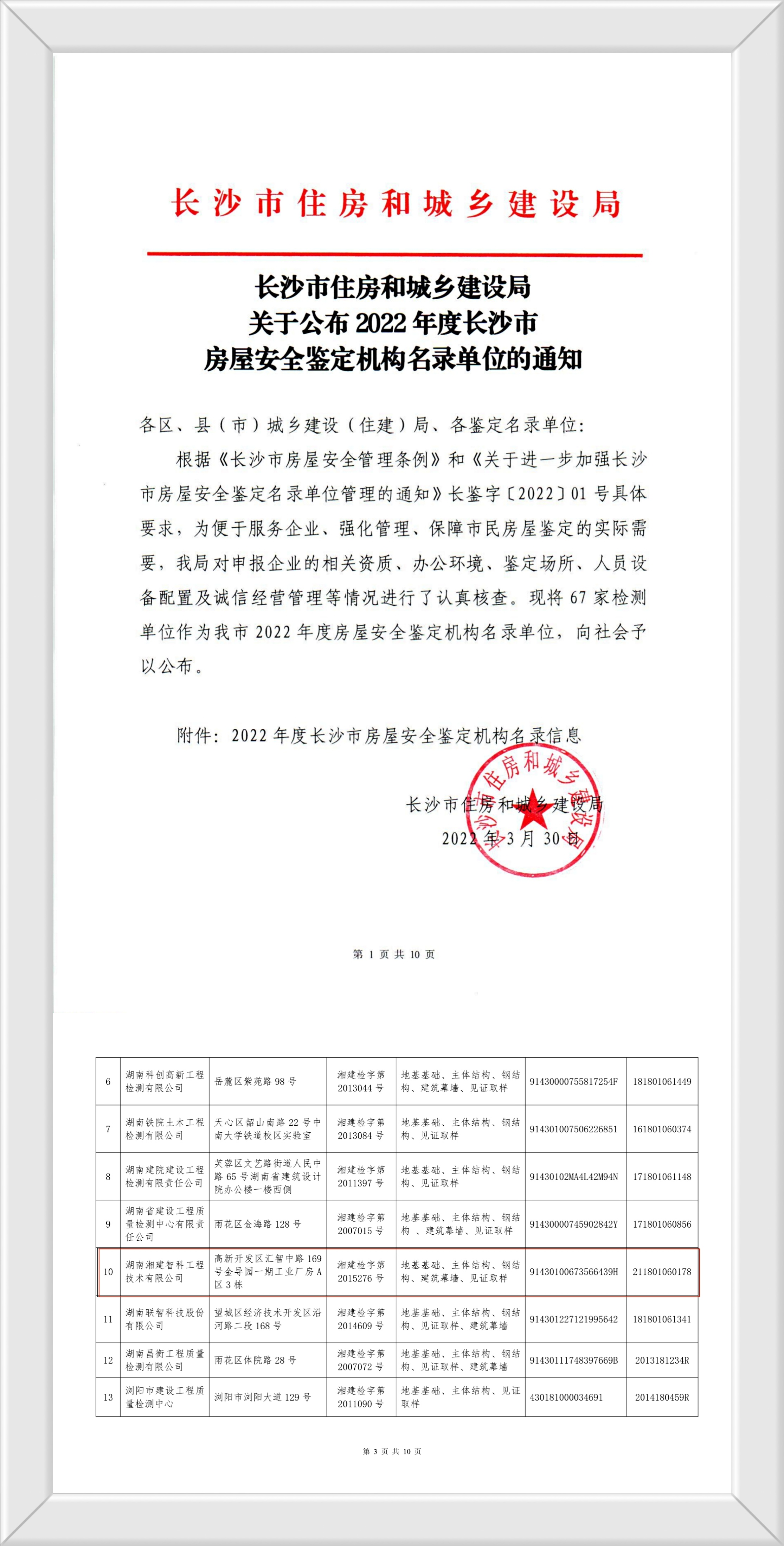 长沙市住建局2022年度房屋安全鉴定机构名录单位