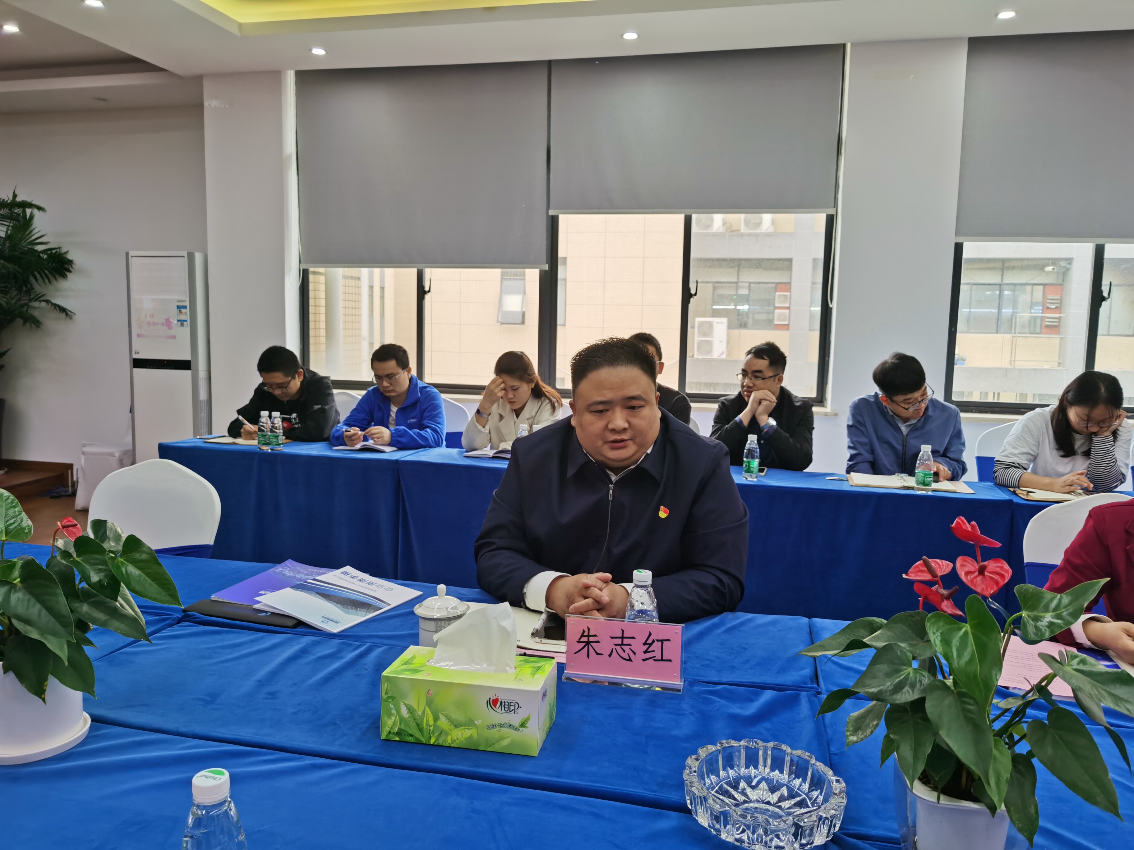 长沙高新区新能源与节能环保行业党委副书记冯迪明、朱志红以及党委委员何大平、党建指导员张苗等领导参会;湘建智科所有在司党员参加,公司董事长秦敏先生和其他中高层领导、有意向党组织靠拢的部分员工列席会议。