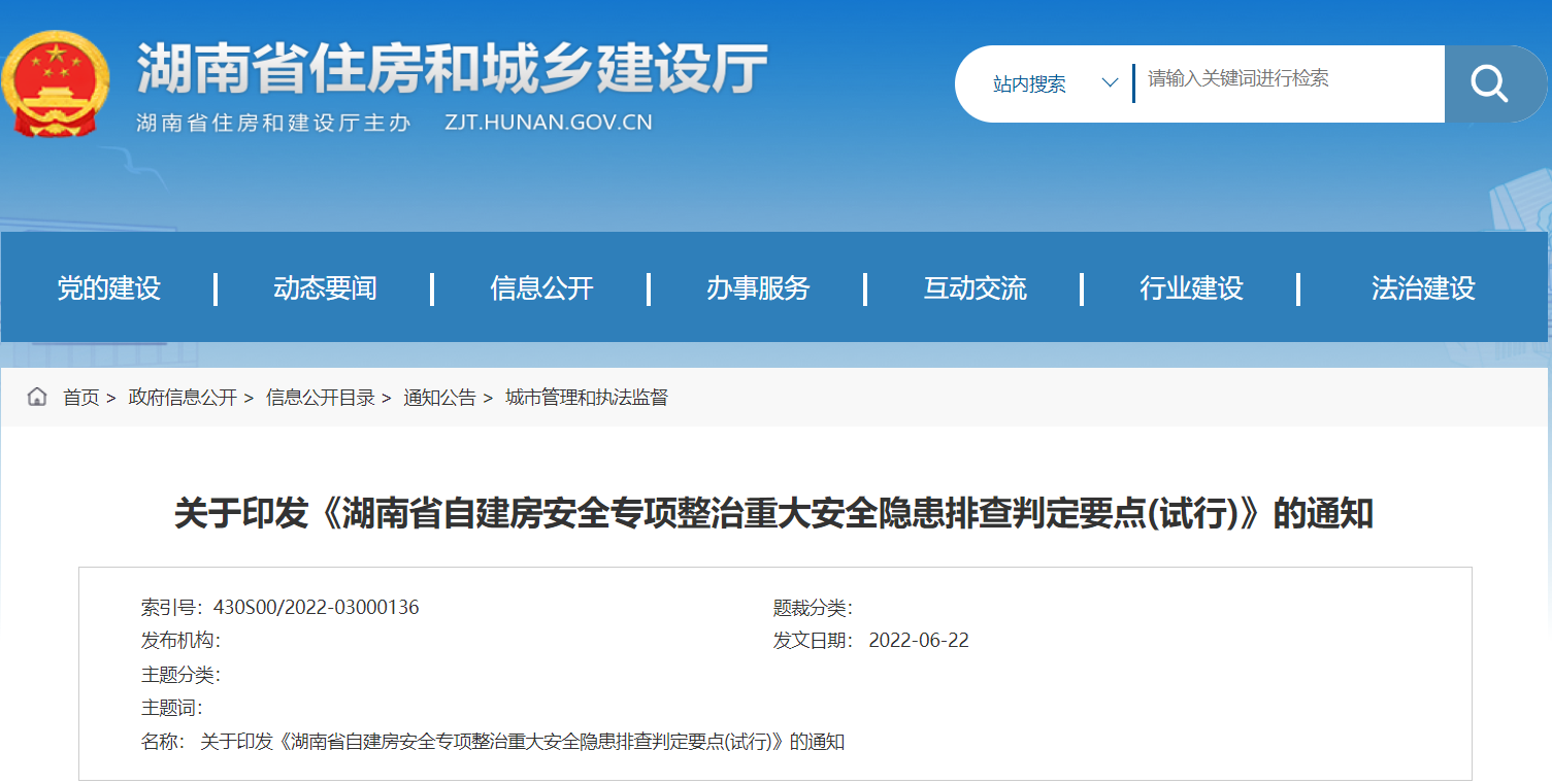 本要点仅作为自建房日常重大安全隐患排查时的参考依据,不作为房屋安全性鉴定评级的最终标准或危险性等级的评定标准。