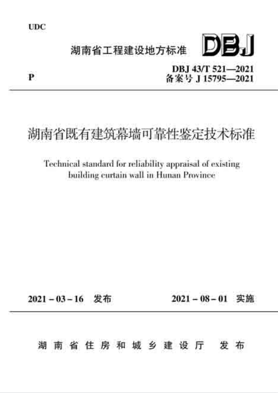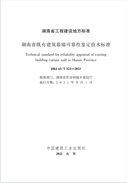 主编《湖南省既有建筑幕墙可靠性鉴定技术标准》